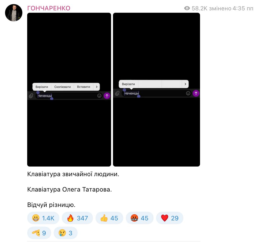 Скриншот: t.me/oleksiihoncharenko