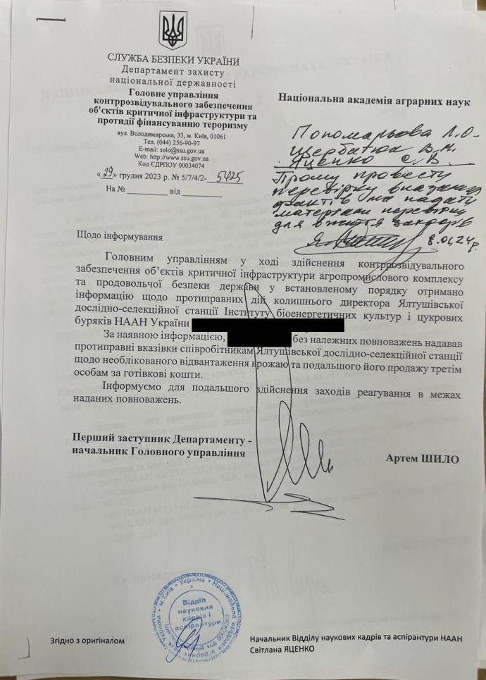 Такі листи НААН отримувала від усуненого голови економічного підрозділу СБУ Артема Шила, якого наразі підозрюють в організації схеми заволодіння майже 100 млн грн на закупівлях в "Укрзалізниці"