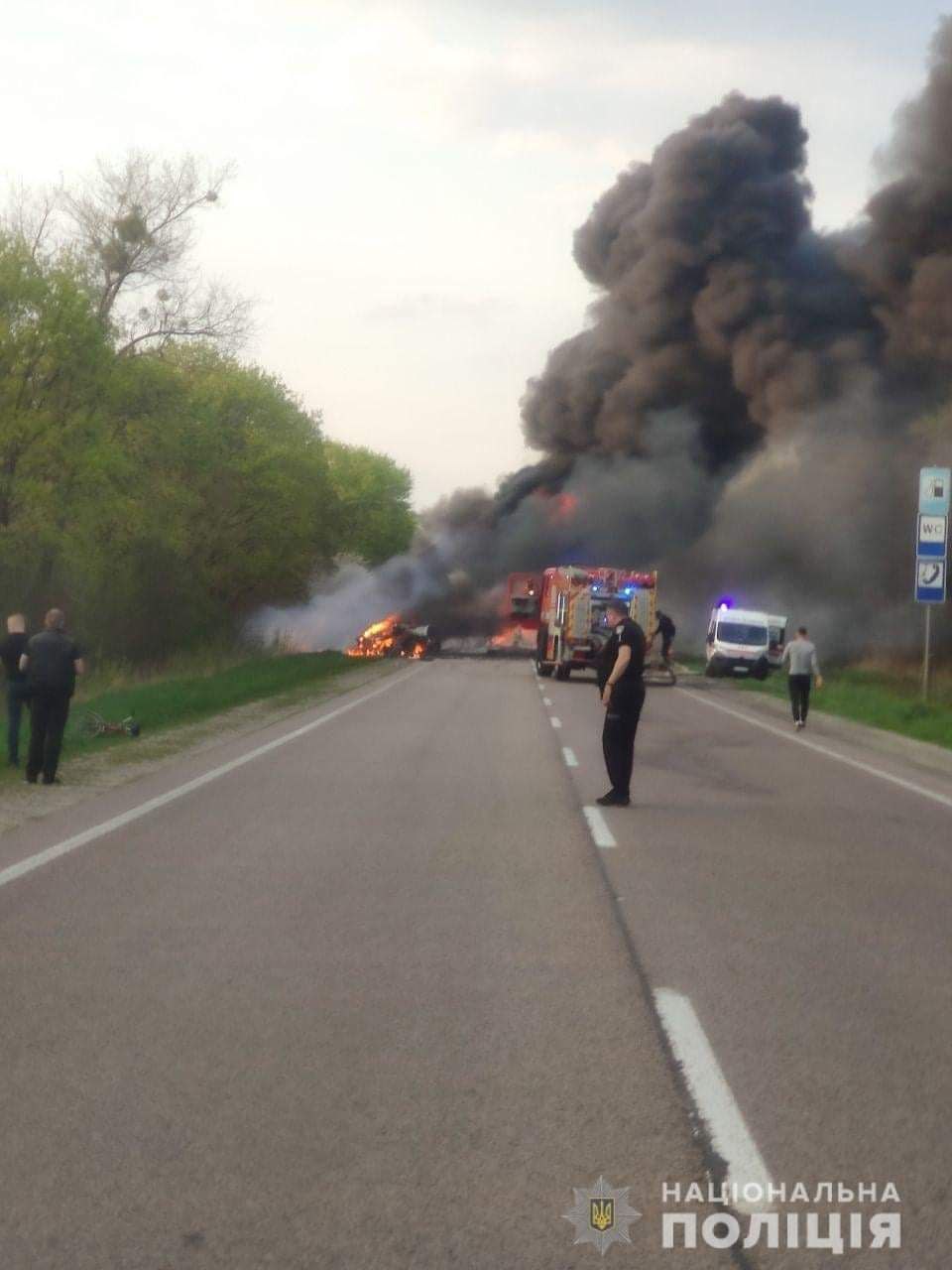 Внаслідок зіткнення транспортні засоби загорілися. За попередньою інформацією, загинули 16 осіб. Наразі відомо про ще шістьох травмованих. На місце події виїхав начальник поліції області Олексій Камишанський, працює слідчо-оперативна група ГУНП, поліцейські відділення №2 (м. Радивилів) та Дубенського районного відділу та патрульні, - розповіли правоохоронці.