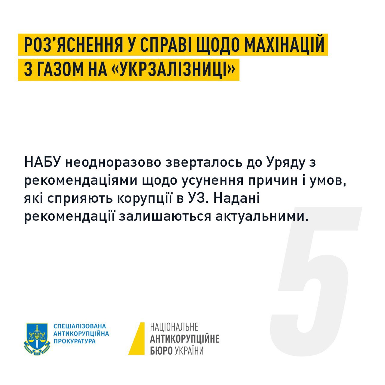 9 червня 2023 року детективи НАБУ повідомили про підозру 4 особам, серед яких два керівники філії "Центр забезпечення виробництва" АТ "Укрзалізниця" (посади зазначені на момент вчинення злочину), фактичний власник компанії-постачальника, а також посередник, зловживання яких завдали АТ "Укрзалізниця" збитків на загальну суму понад 206 млн грн. Дії осіб кваліфіковані за ч. 5 ст. 191 КК України.