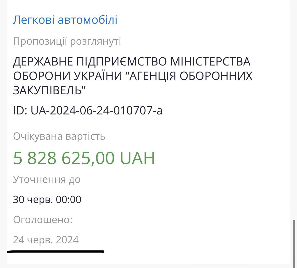 Про це повідомляє Telegram-канал "Тендерний Троль".