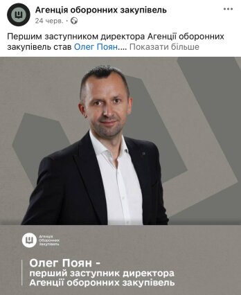 21 червня Ситника призначили заступником директорки "Агенції оборонних закупівель", але 24 червня - Олега Пояна як першого заступника. І одразу, 24 червня, було оголошено тендер на закупівлю 5 автомобілів для потреб Агенції.