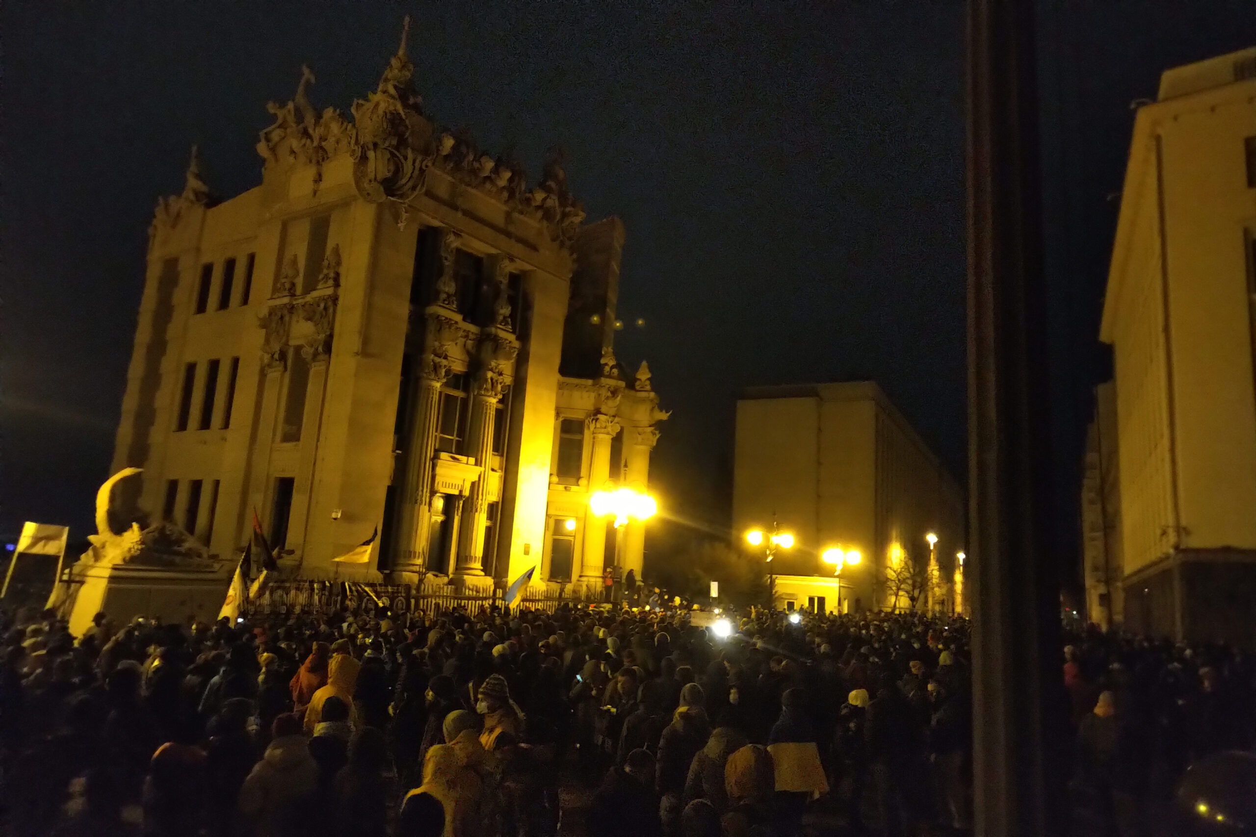 Поліція намагалась підійти до дверей ОП, але активісти їх витіснили на вулицю Лютеранську. Наразі уся площа перед будівлею Офісу президента зайнята протестувальниками.
