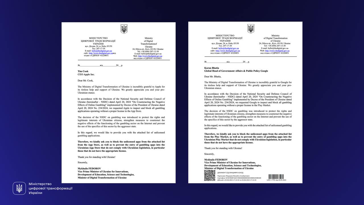 "Сьогодні отримали перші рішення — в App Store заблоковано 50 застосунків азартних ігор", - наголосив міністр.