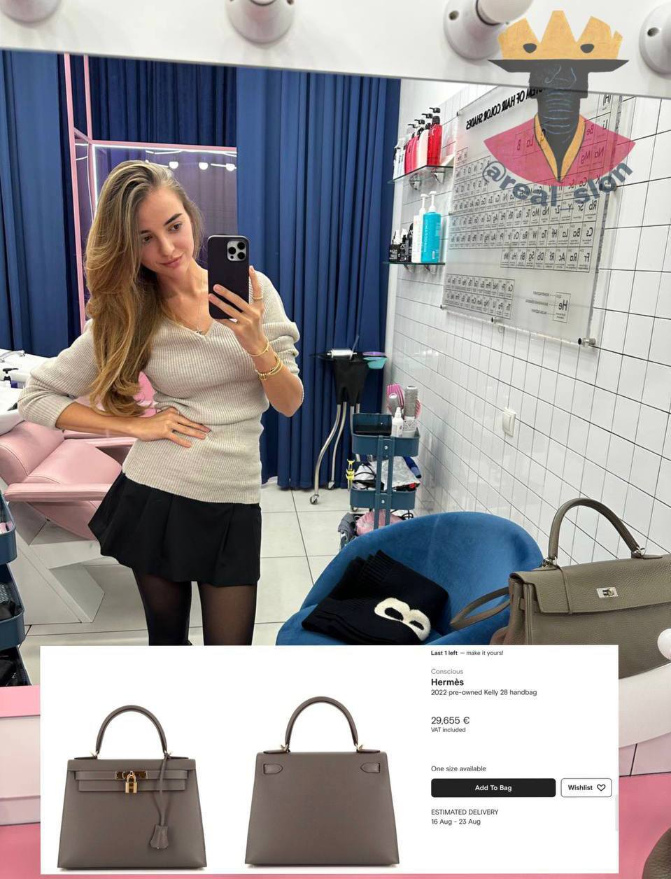 У колекції Марії помічаємо сумочку Hermes Kelly за майже 30.000€, Dior saddle bag за 3800€, класична Celine за 3000€ та більш скромна Bottega Veneta всього за 1400€.