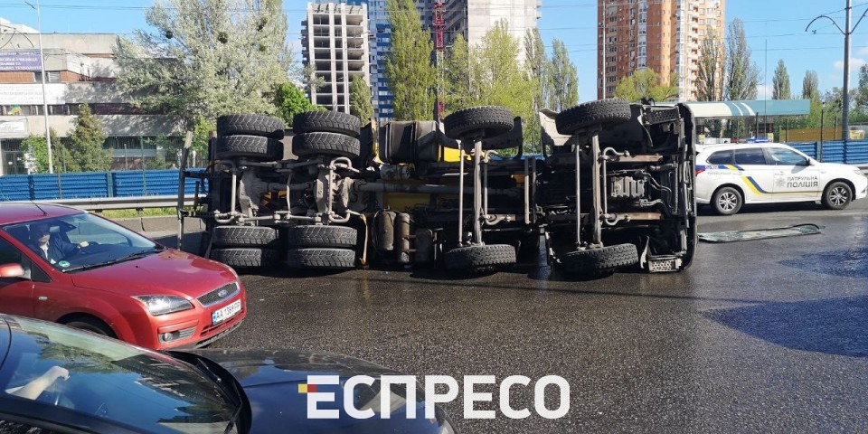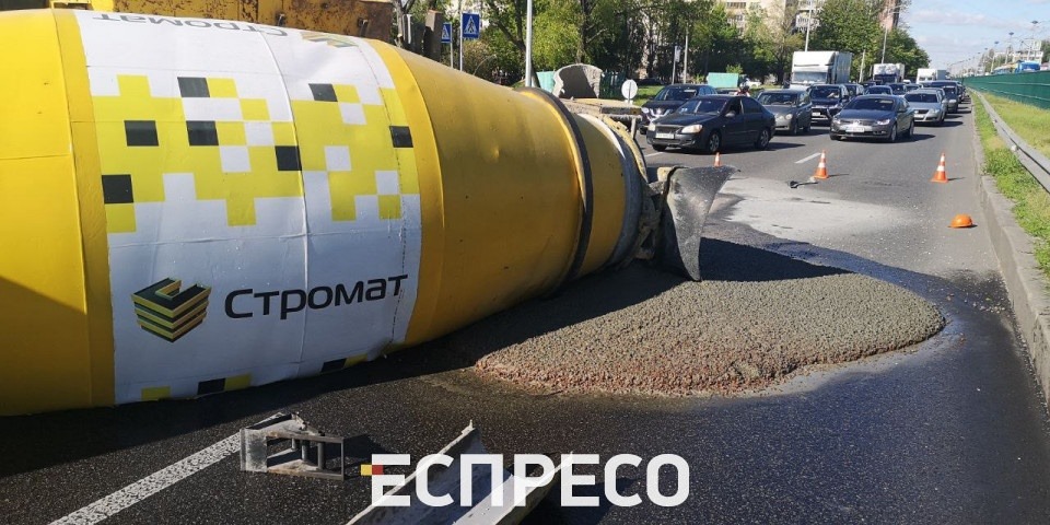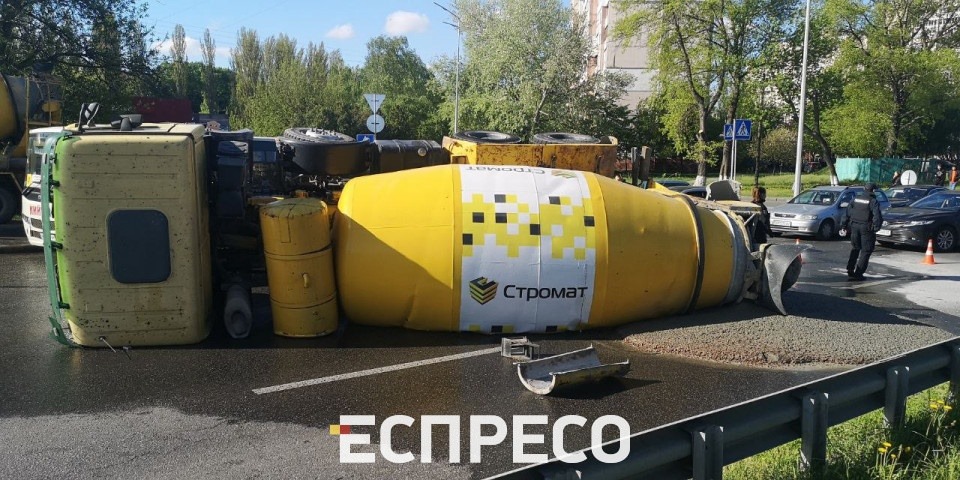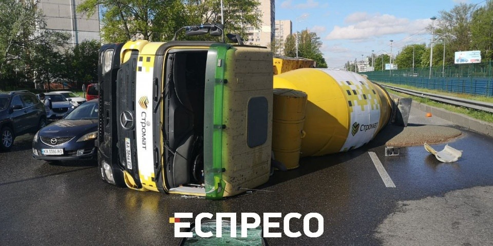 Сьогодні вранці на проспекті Леся Курбаса у Києві сталася ДТП за участю бетонозмішувача Mersedes.