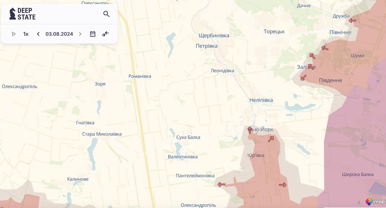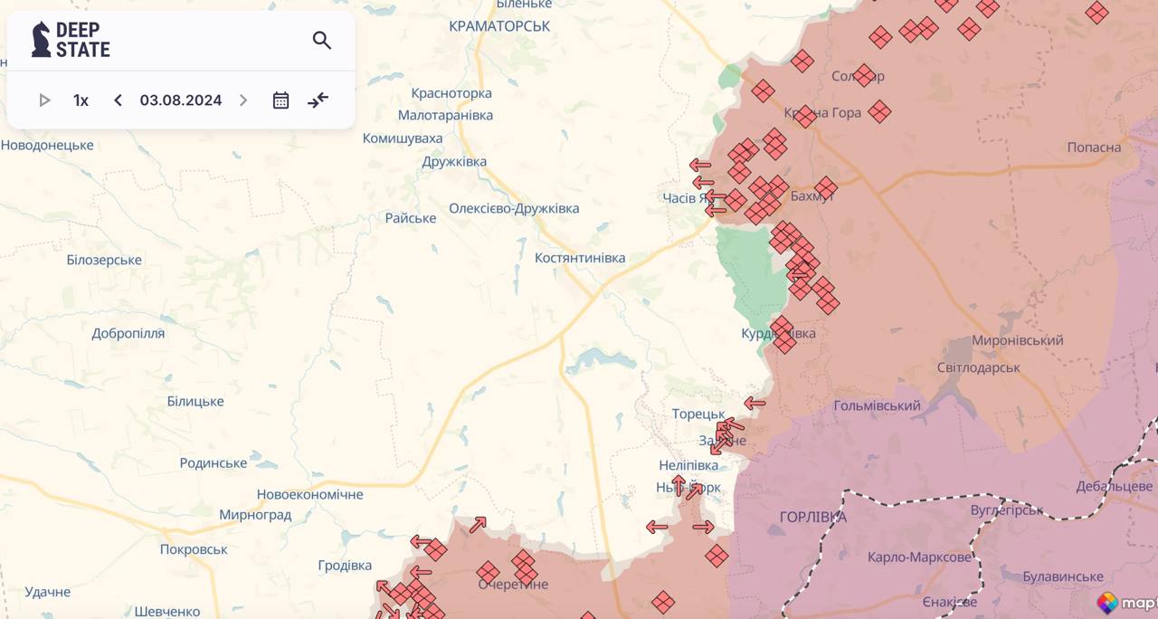 При цьому на карті DeepState видно, що ворог просунувся у Часовому Яру та Залізному. Тривають бої біля Новоселівки Першої.
