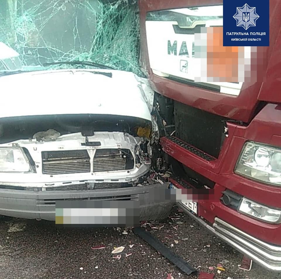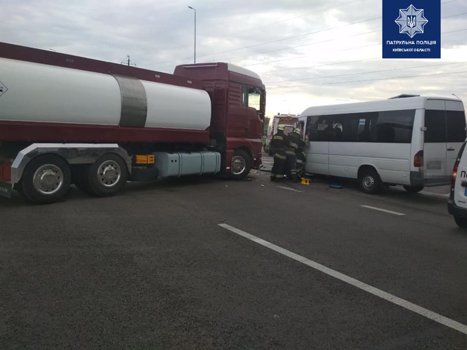 Як повідомляє патрульна поліція Київської області, на 35 км автодороги, в районі повороту на с. Калинівка (Київська область), трапилася дорожньо-транспортна пригода за участю вантажівки MAN та маршрутного транспортного засобу Mercedes Sprinter.