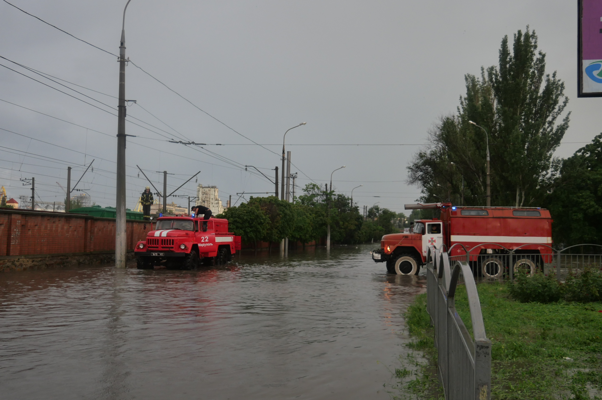Як повідомляє місцева Служба порятунку, рятувальники Донеччини 21 раз залучалися до ліквідації наслідків негоди. Зокрема, 15 разів бійці ДСНС здійснювали відкачування дощової води з житлових будинків та об’єктів інфраструктури Маріуполя. Всього було відкачано 3288 куб. м води. Також, у смт Мангуш із підтопленого житлового будинку було врятовано 3 людей, у тому числі дитину.