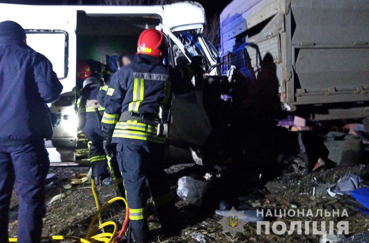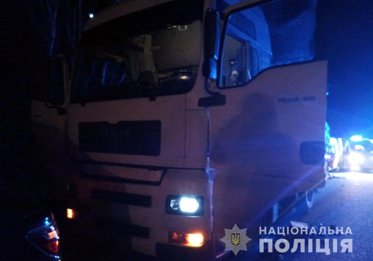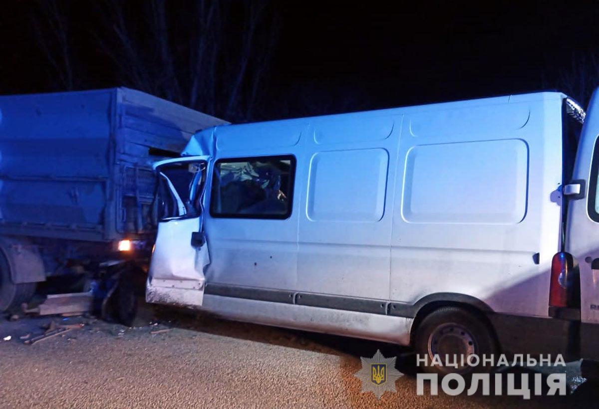Поліція повідомила, що за попередніми даними, водій мікроавтобуса Renault зіткнувся з вантажівкою MAN, що стояв на узбіччі з увімкненим аварійним світлом.