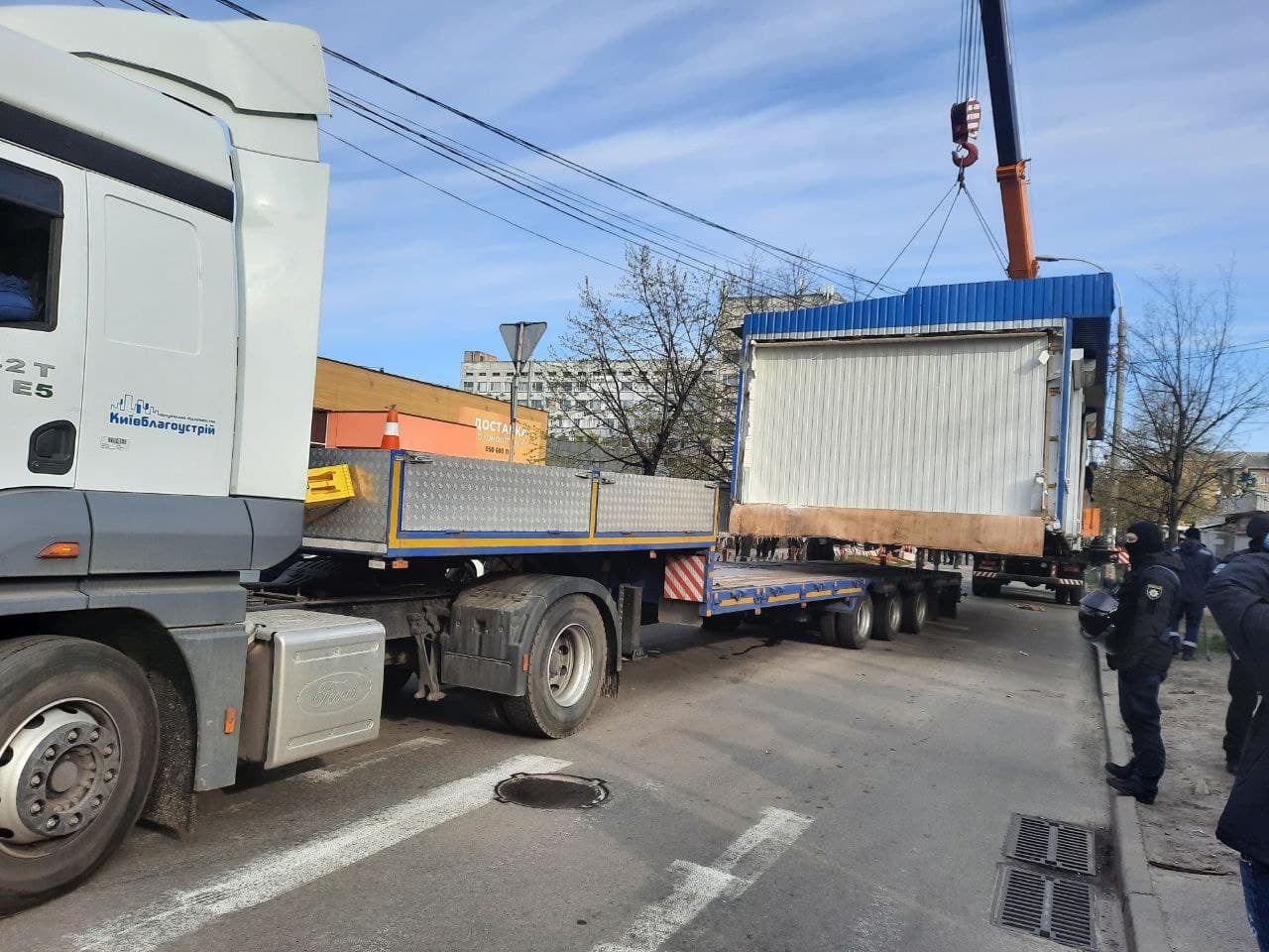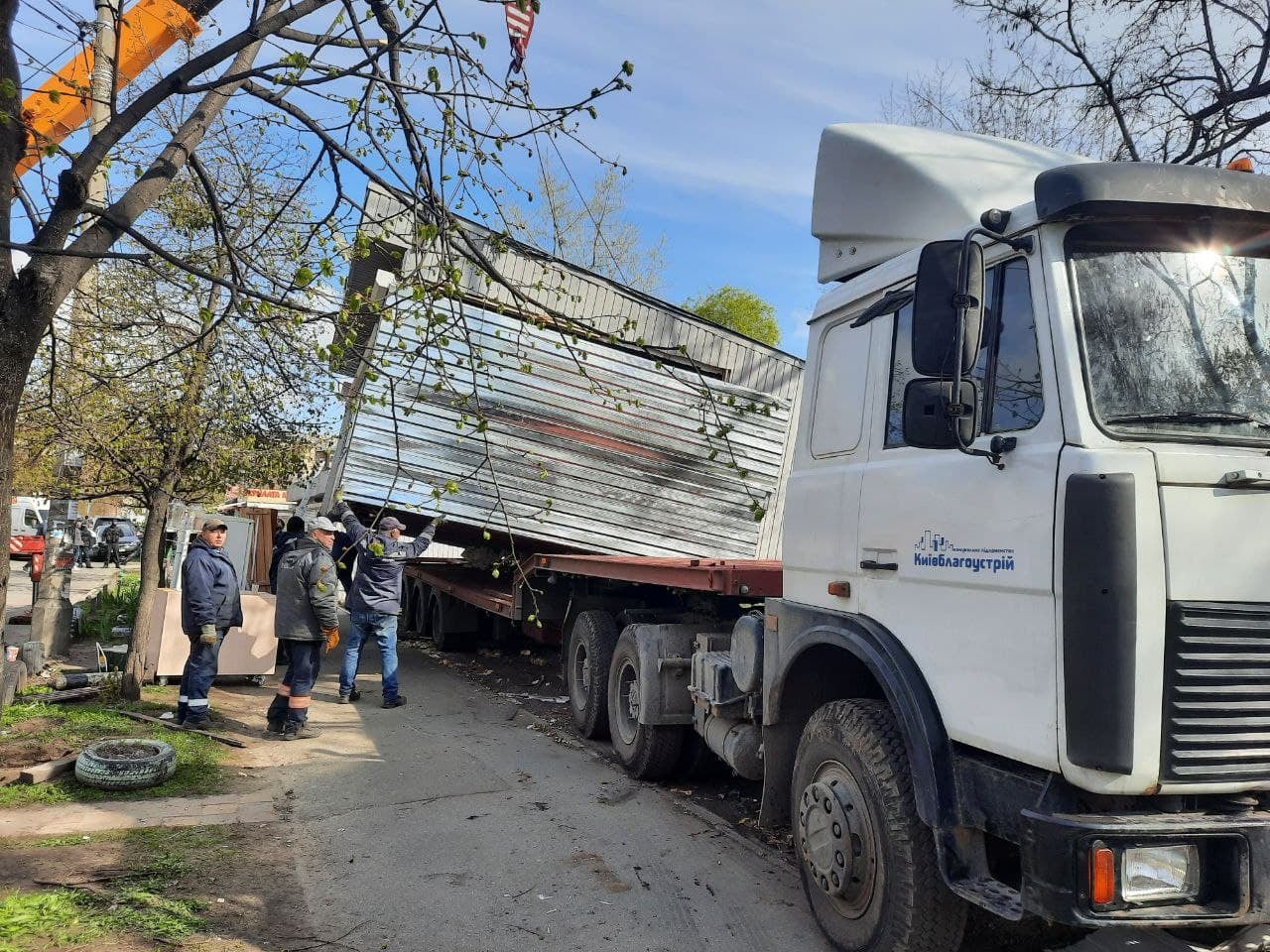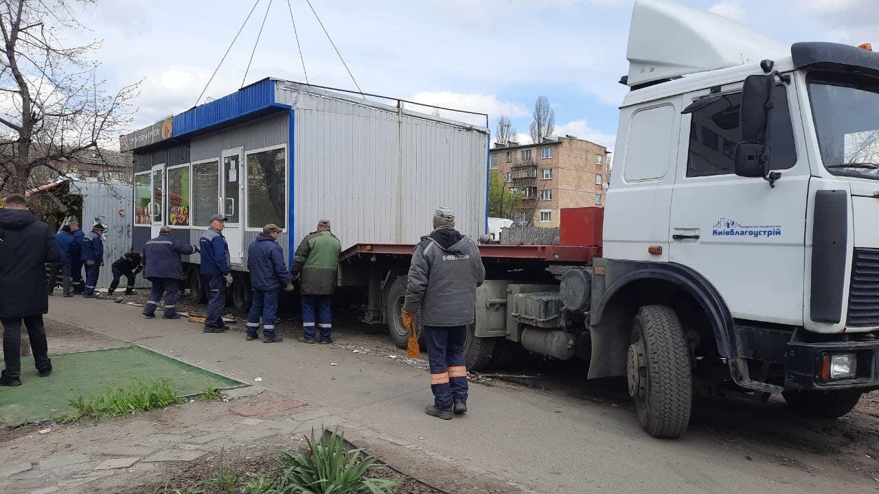 Як повідомило комунальне підприємство "Київблагоустрій", у Дніпровському районі 27 квітня відбувається демонтаж тимчасових споруд без дозвільних документів на розміщення, що розташовувалися на проспекті Соборності.