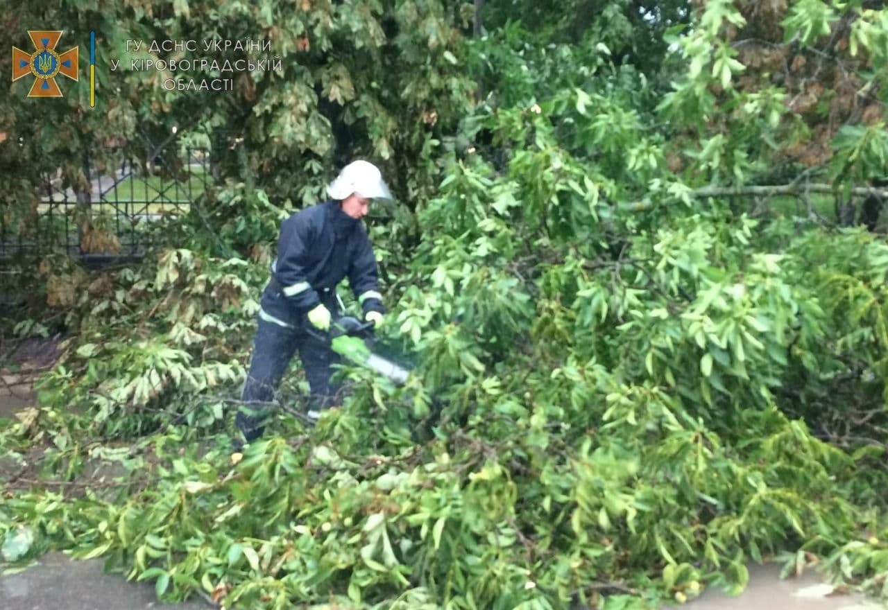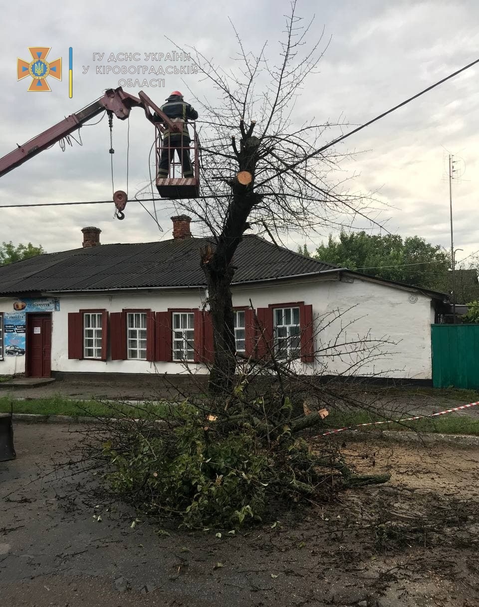 Рятувальники провели роботи по розпилюванню та прибиранню 85 дерев, що впали на житлові будинки, автомобілі, проїжджі частини (з них на території м. Кропивницького — 61, Кропивницького району — 19, Новоукраїнського району – 2, Олександрійського району — 3).