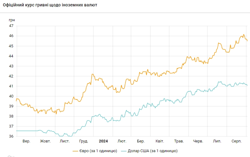 - 1 євро – 45,50 (-20 коп.)
