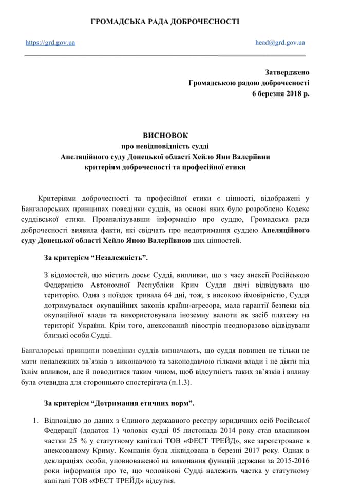 Висновок Громадської ради доброчесності (сторінка №1)