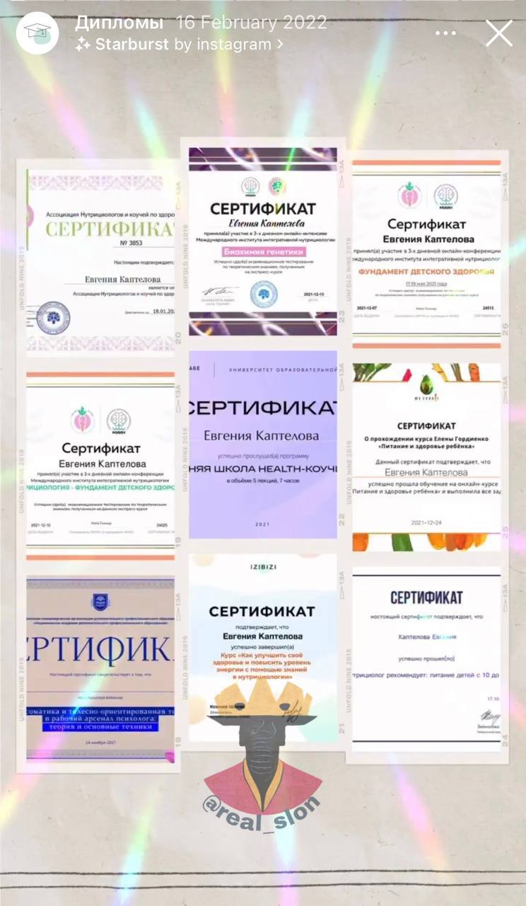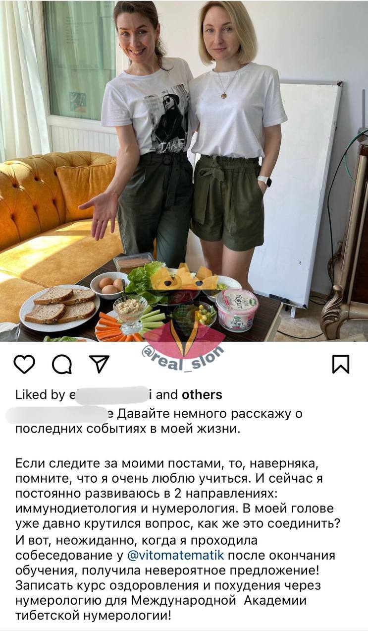 Євгенія Каптєлова пише у своїх соцмережах, що вона - коуч нутриціолог, нумеролог, психосоматолог. У лютому 2022-го напередодні великого вторгнення рф Євгенія у Москві проходила тренінг з дієтології. Отримати консультацію від навченої росіянами дієтологині-нумерологині можна всього за 1000 грн.
