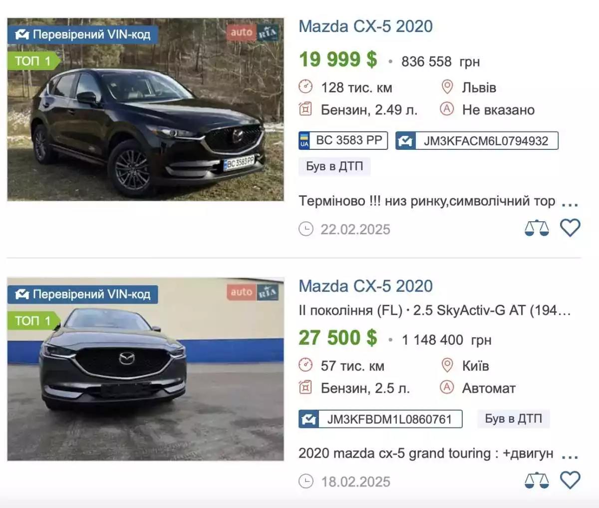 Також вказано, що 23 вересня 2022 дружина проректора купила авто Mazda CX-5 (2020) також за 14 тис. гривень. Згідно з даними сайту auto.ria вартість вже цього авто коливається в районі 800 тис. гривень та 1,2 млн гривень.