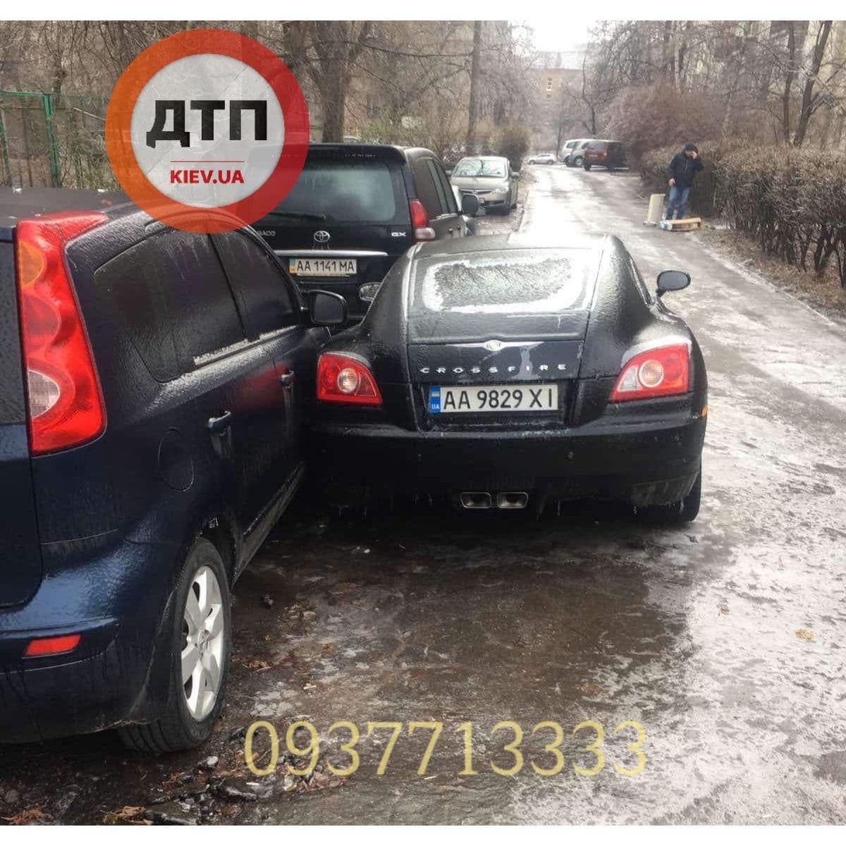 Також через слизьку дорогу у Києві в ДТП потрапив автомобіль Chrysler. Аварія сталася на Повітрофлотському проспекті, 16.