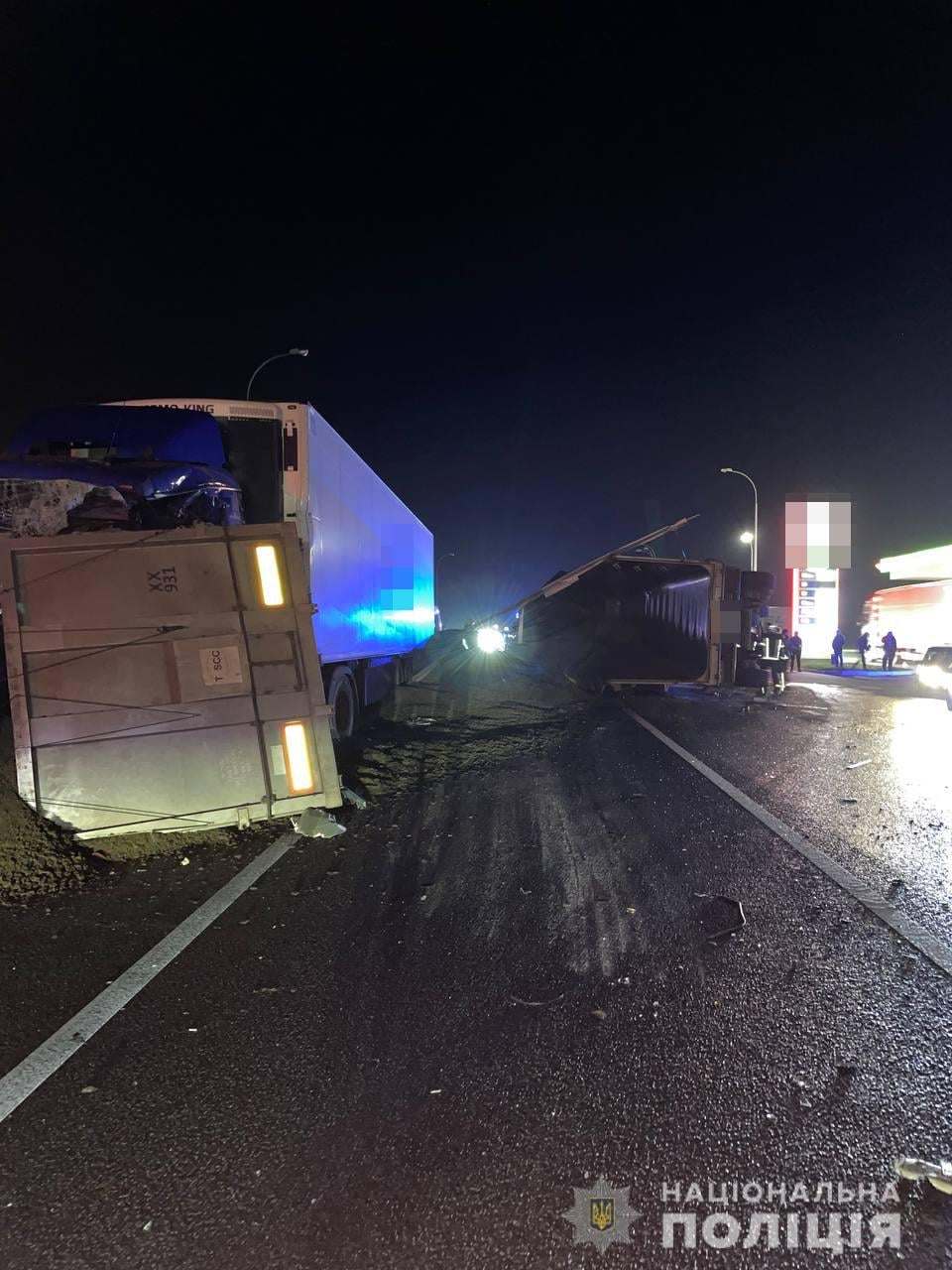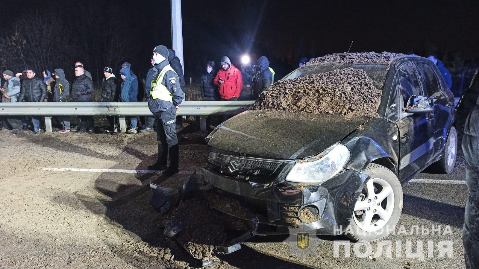 Зазначається, що при перекиданні вантажівки її напівпричеп задів автомобіль Suzuki СХ-4, який в цей час також знаходився на зустрічній смузі руху. До того ж на це авто з причепу вантажівки висипалася суміш щебеню з цементом. Рятувальники терміново почали розкопувати "поховану" під вантажем автівку.