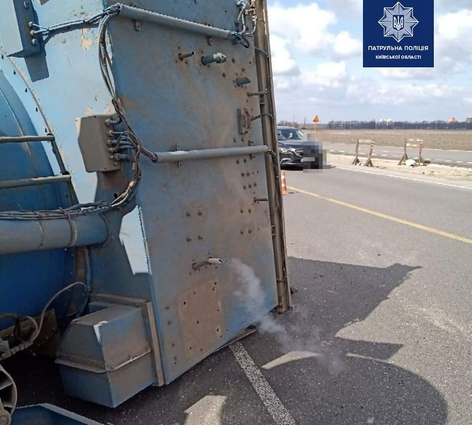 На трасі у Київській області перекинулася автоцистерна з рідким киснем.