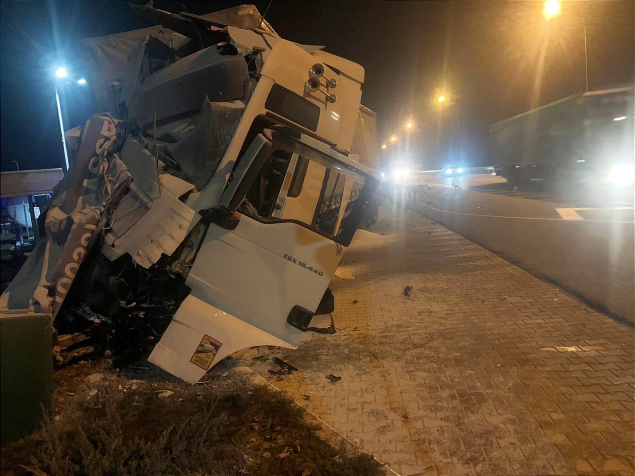 Як повідомили у поліції, увечері 18 листопада 50-річний водій вантажівки MAN з напівпричепом не впорався з керуванням та заїхав на територію автозаправної станції, де протаранив вантажівку Renault Premium, яка стояла біля заправної колонки.