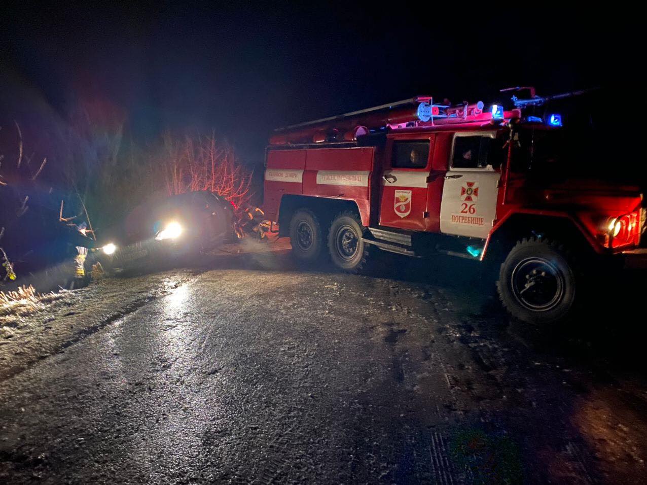 Також надзвичайникам довелося витягати із кювету автомобіль "Ford", водій якого не впорався із керуванням на слизькій дорозі.