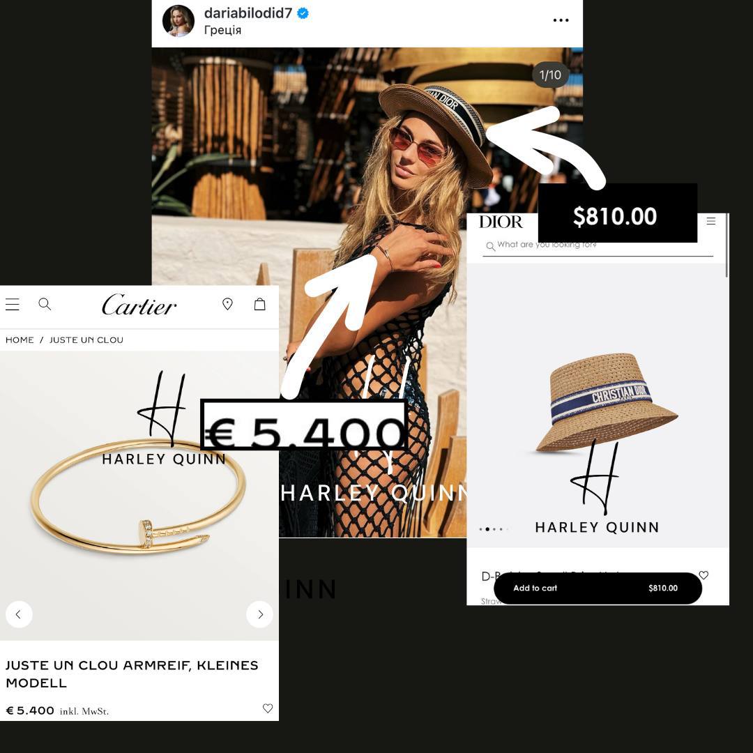 Браслет Cartier коштує 5400 євро (понад 242 тисяч гривень), а капелюх Dior 810 доларів (близько 34 тисяч гривень).