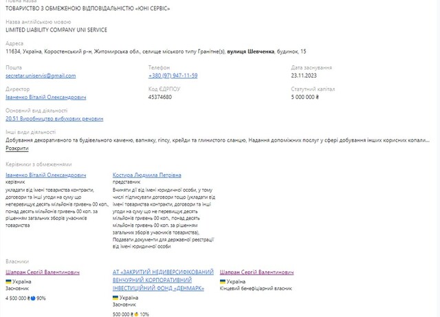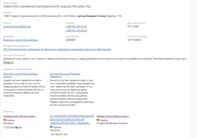 Є і прямі докази того, що бізнес Наумця переходить до Шапрана: Сергій Шапран є прямим бенефіціарним власником ТОВ «Будіндустрія-сервіс ЛТД».