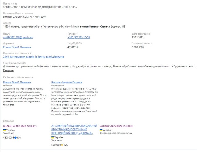 ТОВ «Юні люкс», хоч і зареєстроване за іншою адресою, але має тих самих власників: