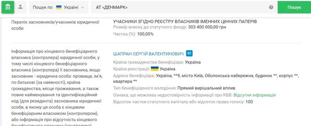 Інвестиційний фонд «Денмарк» повністю належить Сергію Шапрану: