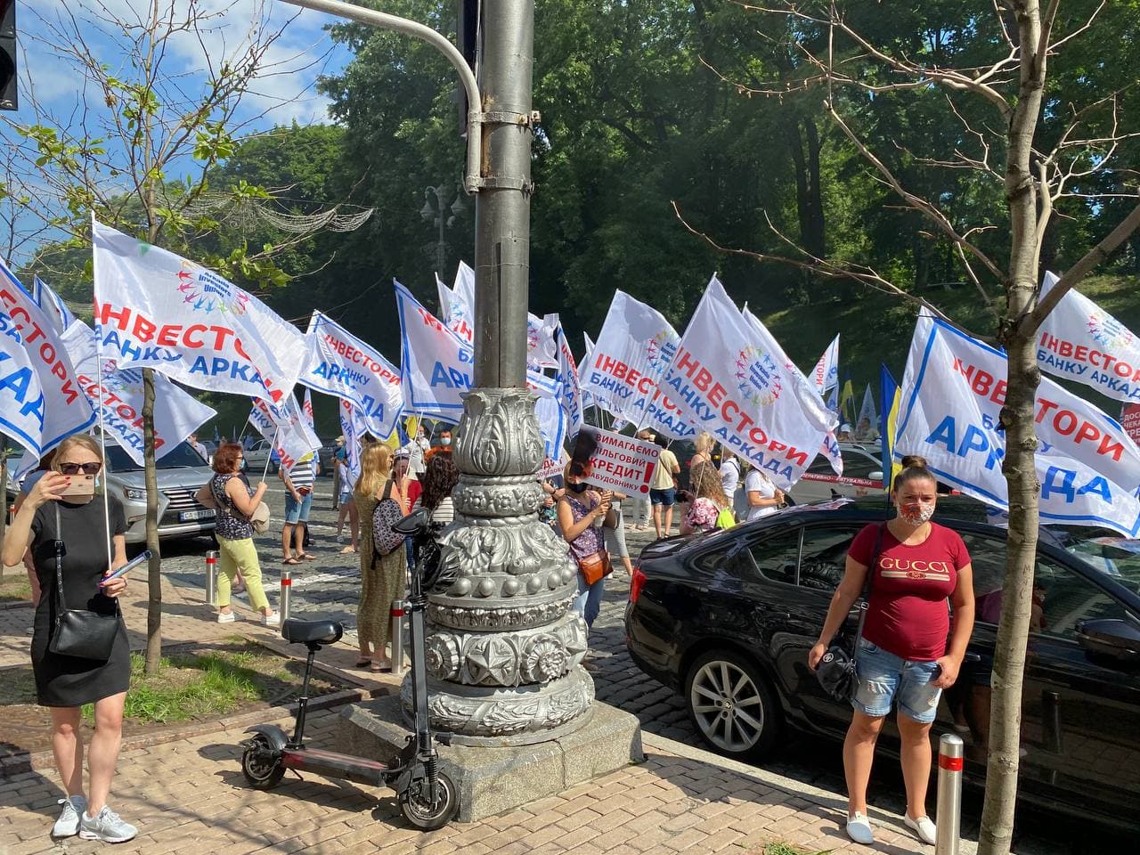 Зазначимо, безстрокова акція протесту об'єднання інвесторів банку "Аркада" розпочалася ще 29 травня 2020 року. Тоді багатотисячним маршем мітингувальники прийшли під офіс "Аркади", КМДА, НБУ та Офіс Президента з вимогою відновити будівництво 40 будинків, що заморожене вже понад 2 роки.