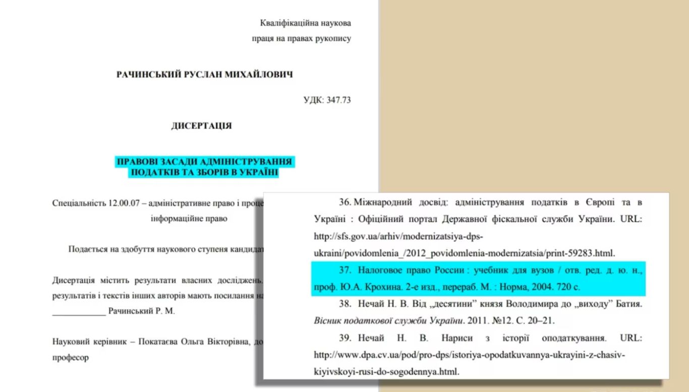 У науковій роботі 2019 року Рачинський аналізував податкові системи, зокрема наводив приклади з російського податкового права.