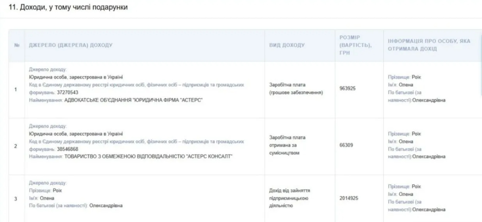 Також у 2021 році Роїк надала значні безвідсоткові позики: майже 3 млн грн одній особі та 100 тисяч доларів — іншій. Експерти вважають, що такі фінансові рішення потребують додаткового пояснення, зокрема щодо походження коштів та умов їх передачі.