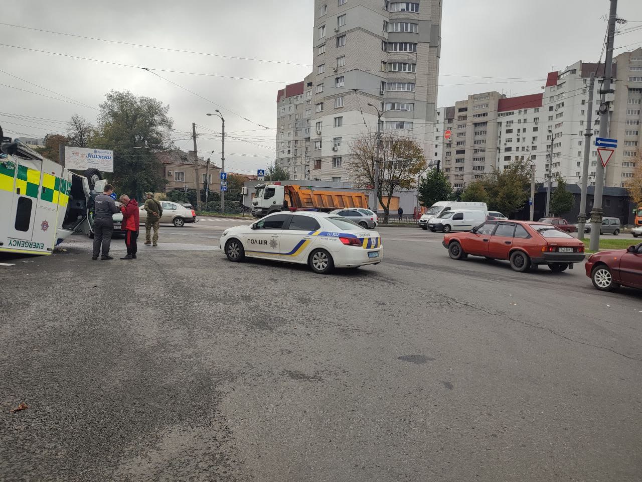 Автомобіль швидкої допомоги "Ford Tranzit" рухався з увімкненими спецсигналами зі сторони вулиці Морозова та зіштовхнувся з транспортним засобом Jeep Compas, який їхав по проспекту Героїв Харкова. Від удару автомобіль швидкої перекинувся. 44-річний медичний працівник та 50-річний водій Jeep Compas отримали травми різного ступеня тяжкості, - йдеться у повідомленні.
