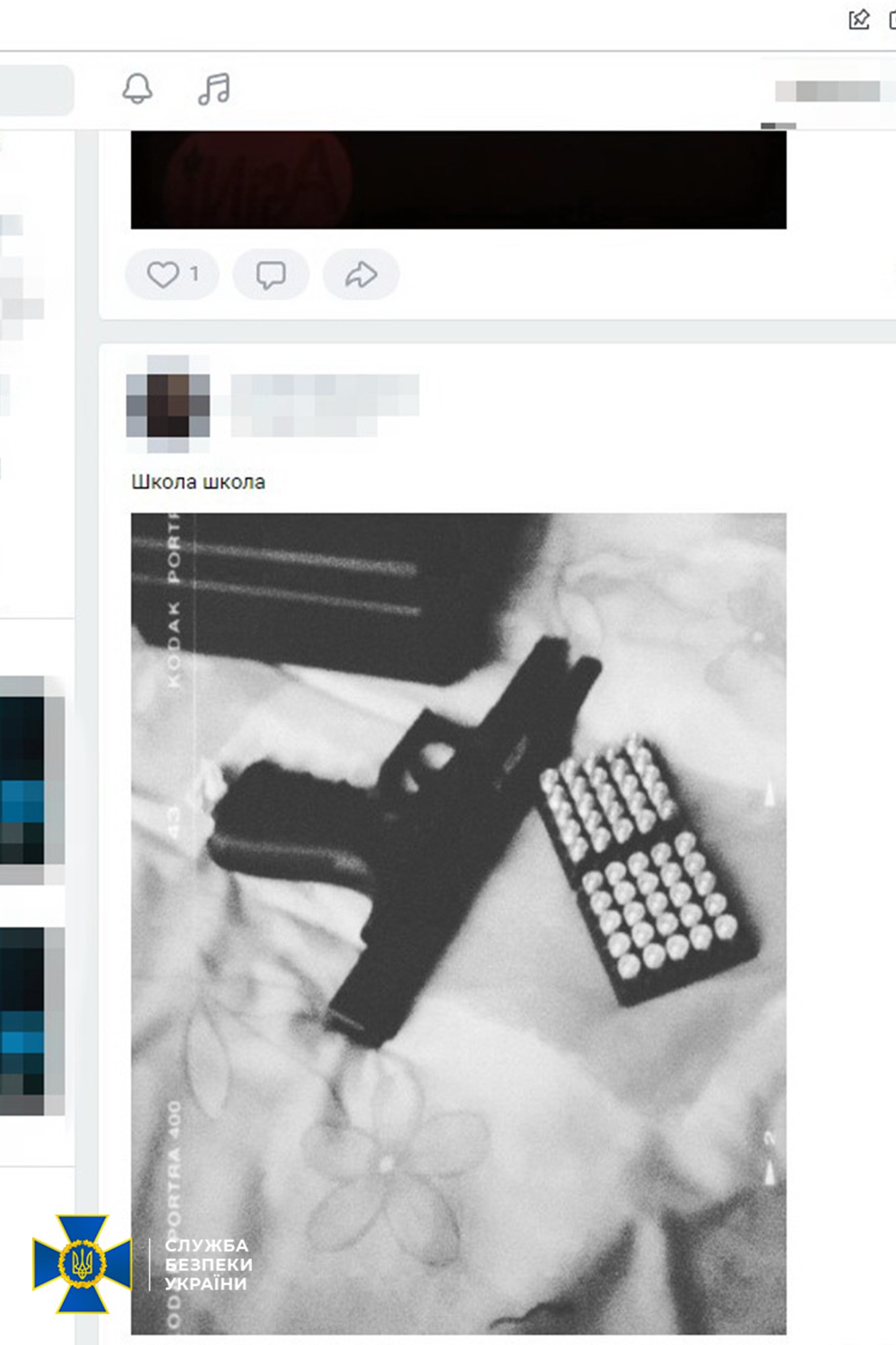 Як повідомляє Служба безпеки України, "викрито двох студентів, які погрожували здійснити масовий розстріл одногрупників. У зловмисників вилучено пістолети".