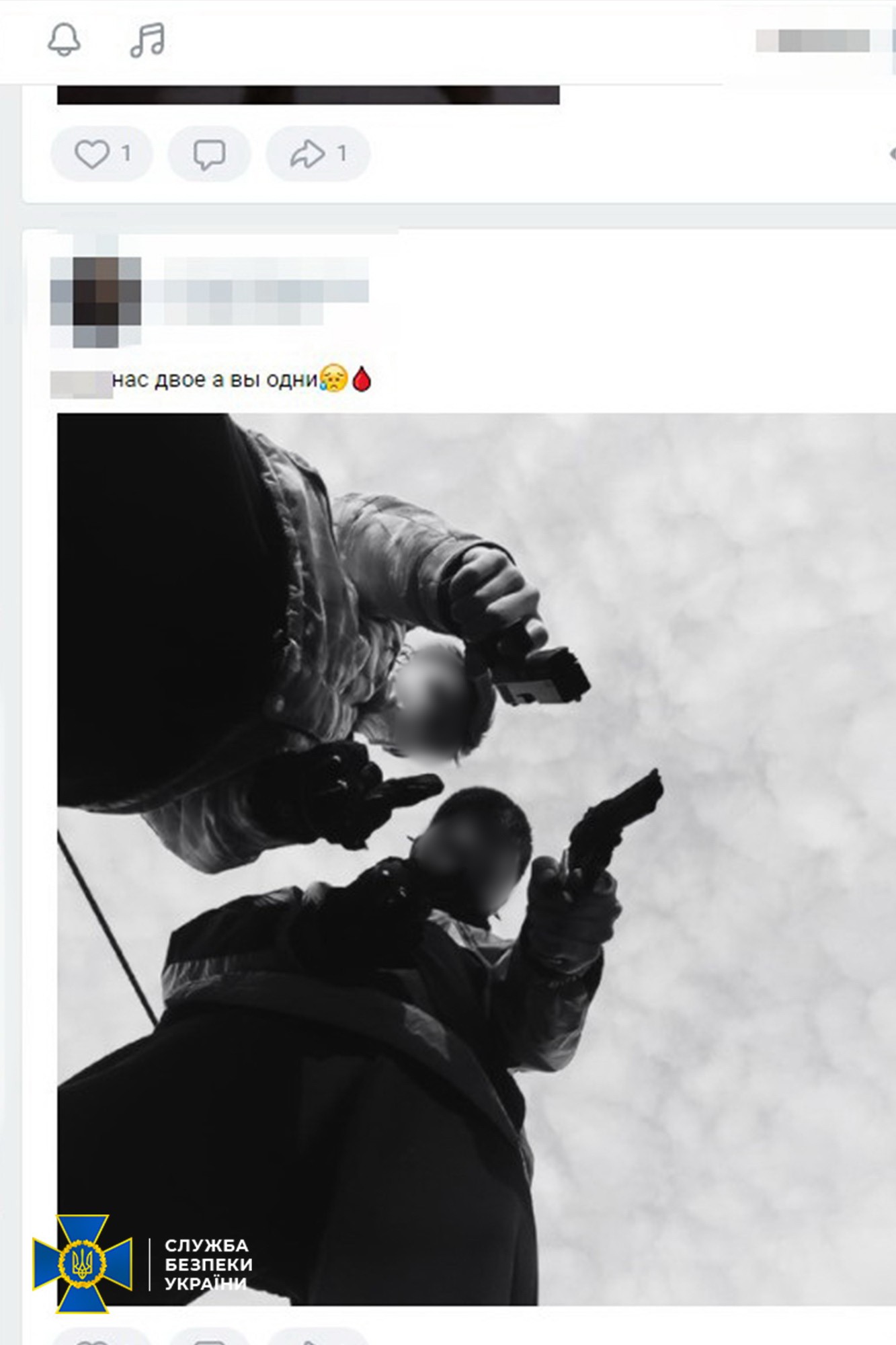 В СБУ кажуть, що двоє юнаків у забороненій в Україні соцмережі "Вконтакте" опублікували інформацію щодо підготовки теракту. Хлопці поширювали дописи з фото- та відео матеріалами про планування масового розстрілу.