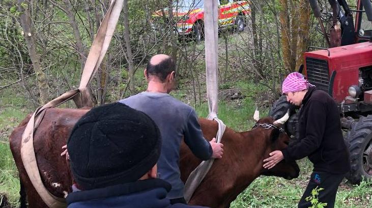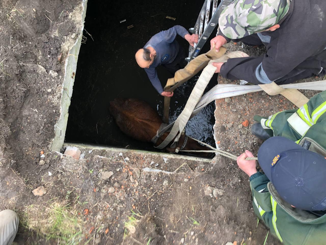 Рятувальники у Кіровоградській області разом із місцевим населенням дістали корову з ями.