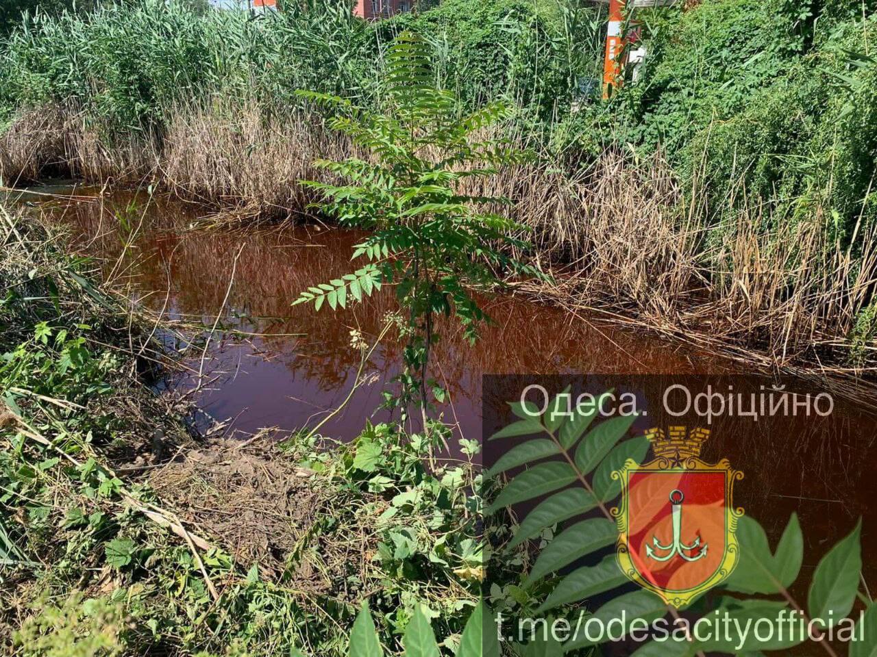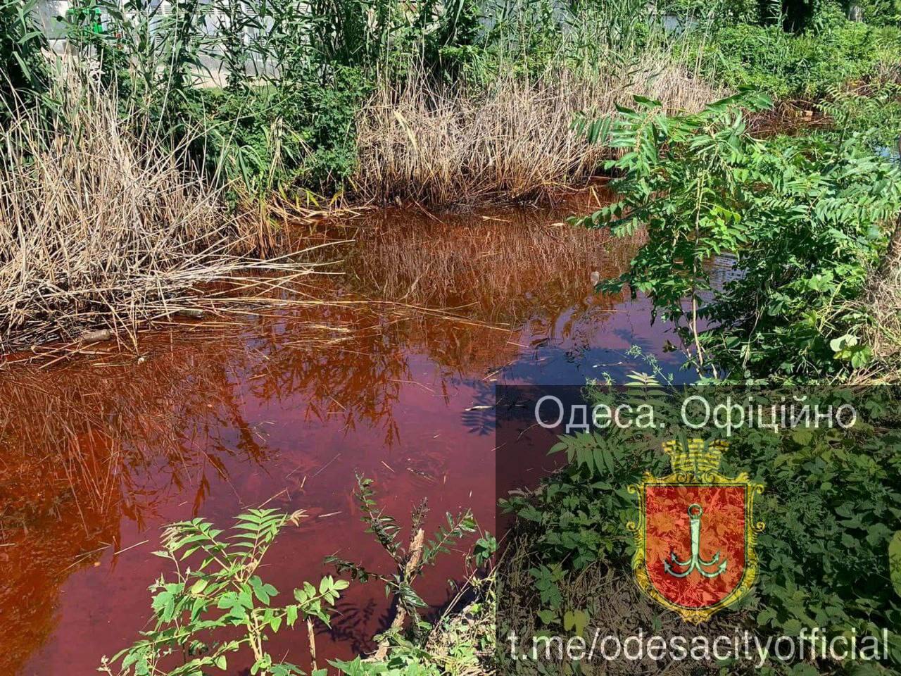 Як повідомили в Одеській міськраді, рідину червоного кольору виявили під час планових робіт з розчищення Куяльницької канави працівники КП "Міські дороги".