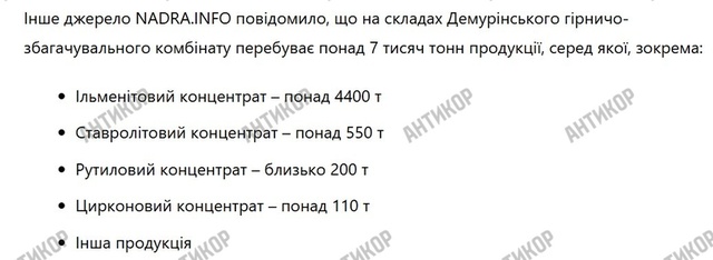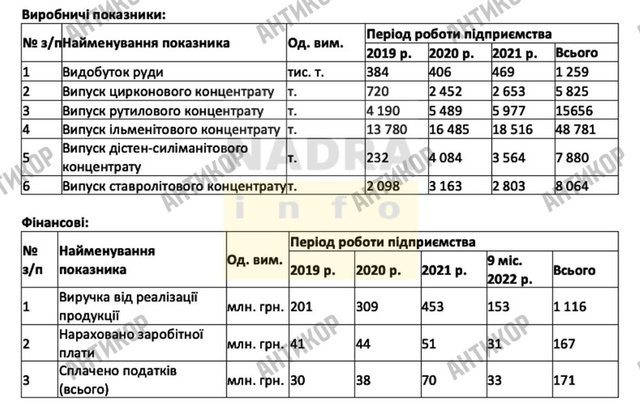 Але повернімось до Демурінського ГЗК, який отримав Машненков. Щось все-таки відомо. По-перше, з матеріалів суду відомі показники за попередні роки. І це дуже немаленькі цифри. У 2019-2022 роках Демурінський ГЗК видобув майже 1 260 000 тонн руди, виробив 48,8 тисячі тонн ільменітового концентрату й отримав понад 1,1 мільярда гривень виручки від реалізації продукції.