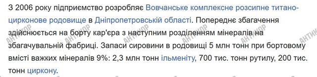 Таким чином, виходить, що активний регіонал, кум Віктора Пшонки і, без сумніву, любитель «русского мира», отримав у свої руки видобуток цирконію, титану, ільменіту та інших рідкісноземельних металів з надр України. Причому учасника тендеру, що запропонував найвищу ціну, просто «кинули». Про Трампа і його домовленості з Зеленським щодо видобутку рідкісноземельних металів краще взагалі промовчати.