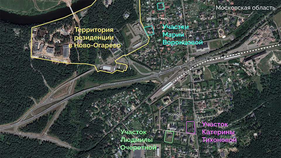Землі довкола Ново-Огарьова купували через закордонні офшори, а потім передавали дочкам – Марії та Катерині. Для конспірації на дівчат нічого не записували – наприклад, території молодшої Катерини після весілля переписали на її чоловіка Кирила Шамалова.