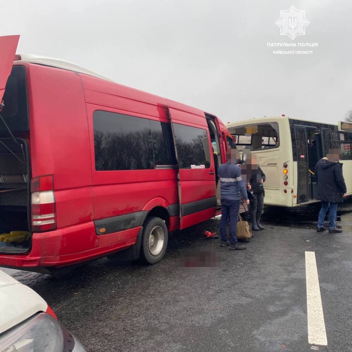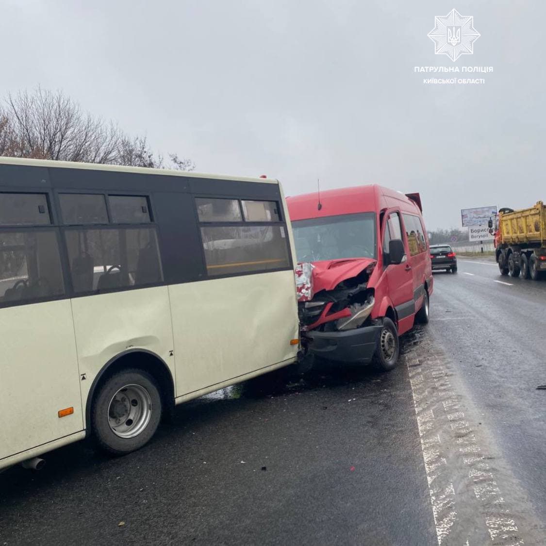 Два мікроавтобуси та пасажирський автобус зіткнулися 10 грудня на автодорозі Київ-Харків у Київській області.