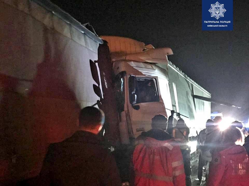Дорожньо-транспортна пригода за участі трьох вантажівок сталася поблизу міста Березань у Київській області.