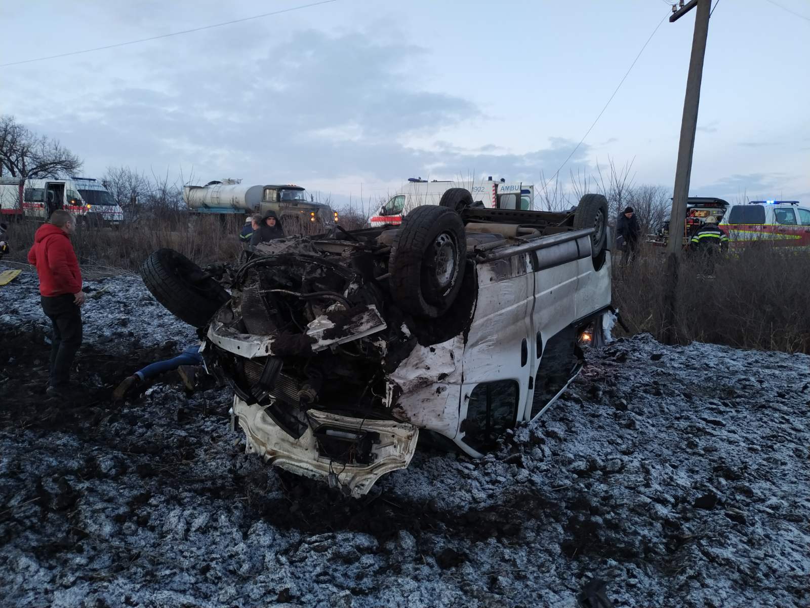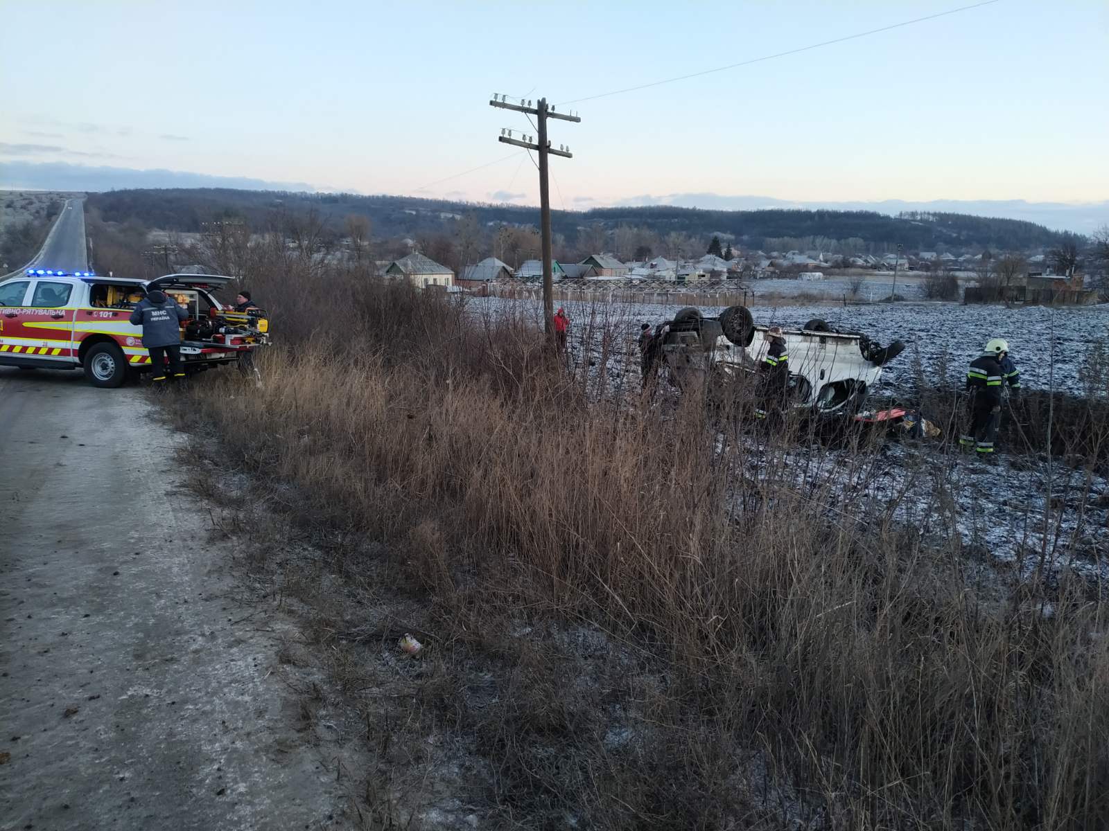 Зранку 9 березня у Харківській області біля села Кам’янка на трасі перекинувся мікроавтобус.