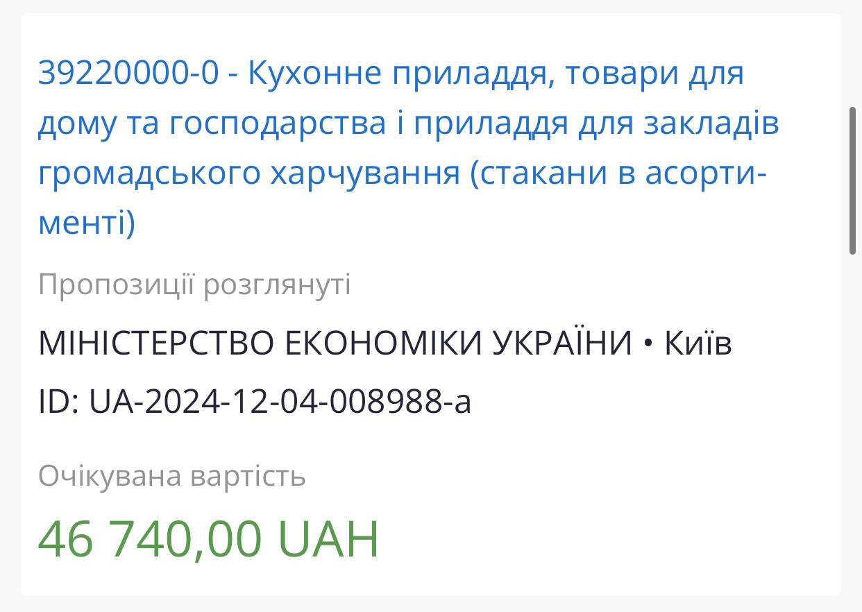 "Мінекономіки Юлії Свириденко пробило чергове дно. Майже на мільйон вони замовляли всілякого непотребу, в той час коли військо виє і просить fpv-дрони та Мавіки.