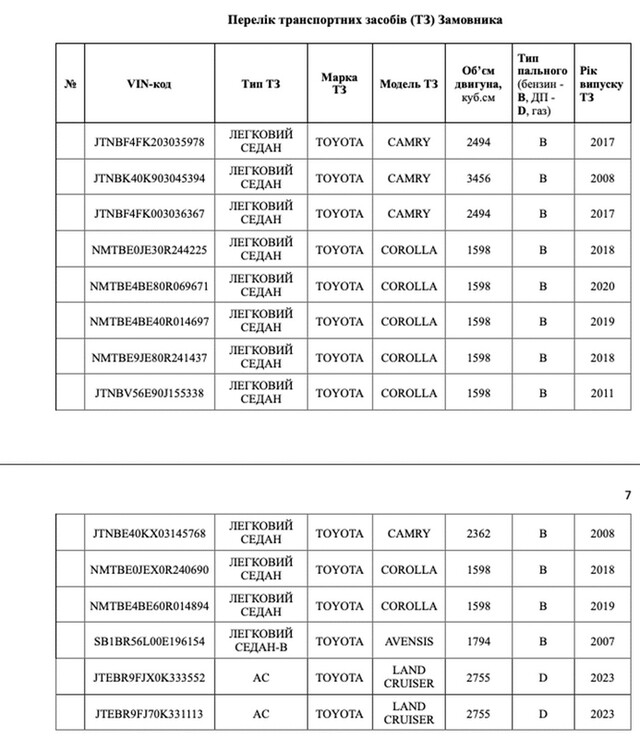 Крім цього, при вивченні договорів про технічне обслуговування машин був знайдений список автомобілів, з якого ми бачимо, що в 2023 році, вже під час війни, у Дніпропетровської облпрокуратури з’являються дві Toyota Land Cruiser, вартість кожної становить від 55 до 65 тисяч доларів, в залежності від комплектації. Всього ж на балансі у прокурорів 14 автомобілів. Невже "тойоти" такі неякісні авто, що так часто ламаються?