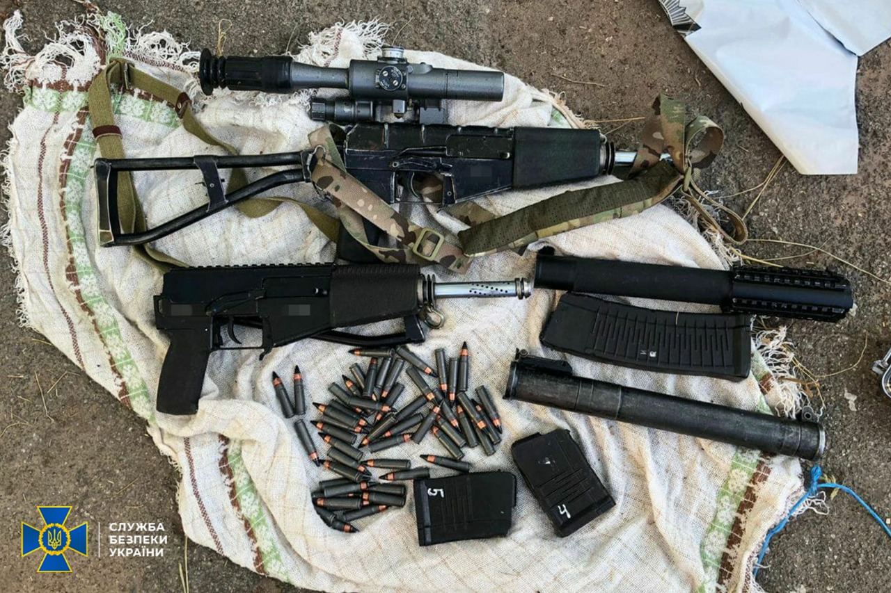 Зокрема, чоловіки переховували снайперські гвинтівки безшумної стрільби "Вінторєз", реактивні протитанкові гранати РПГ-18 "Муха" та автомати безшумної стрільби "Вал".