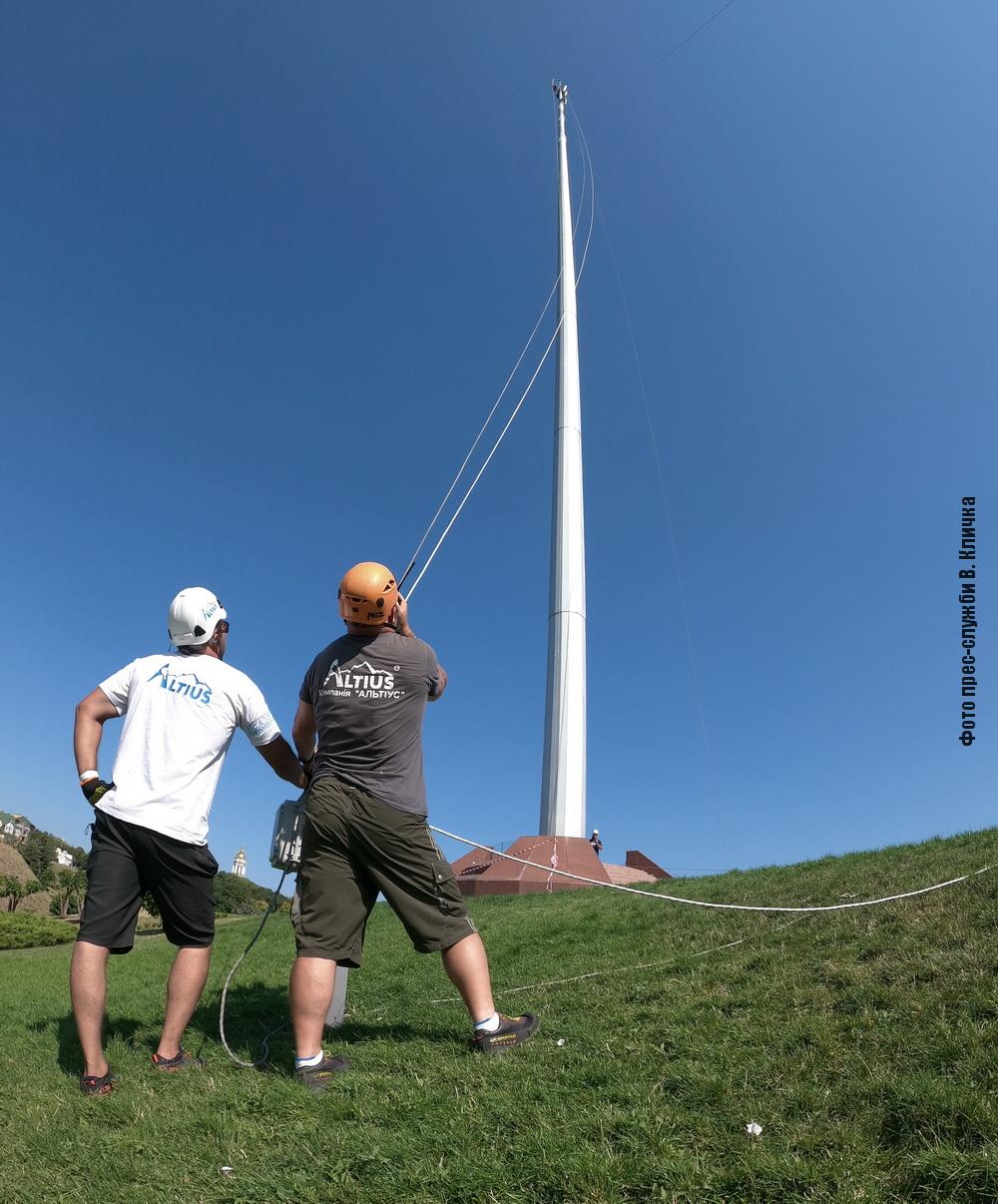 До Дня прапора та 30-річчя незалежності України у Києві встановили новий тризуб на флагштоку найбільшого державного прапора.