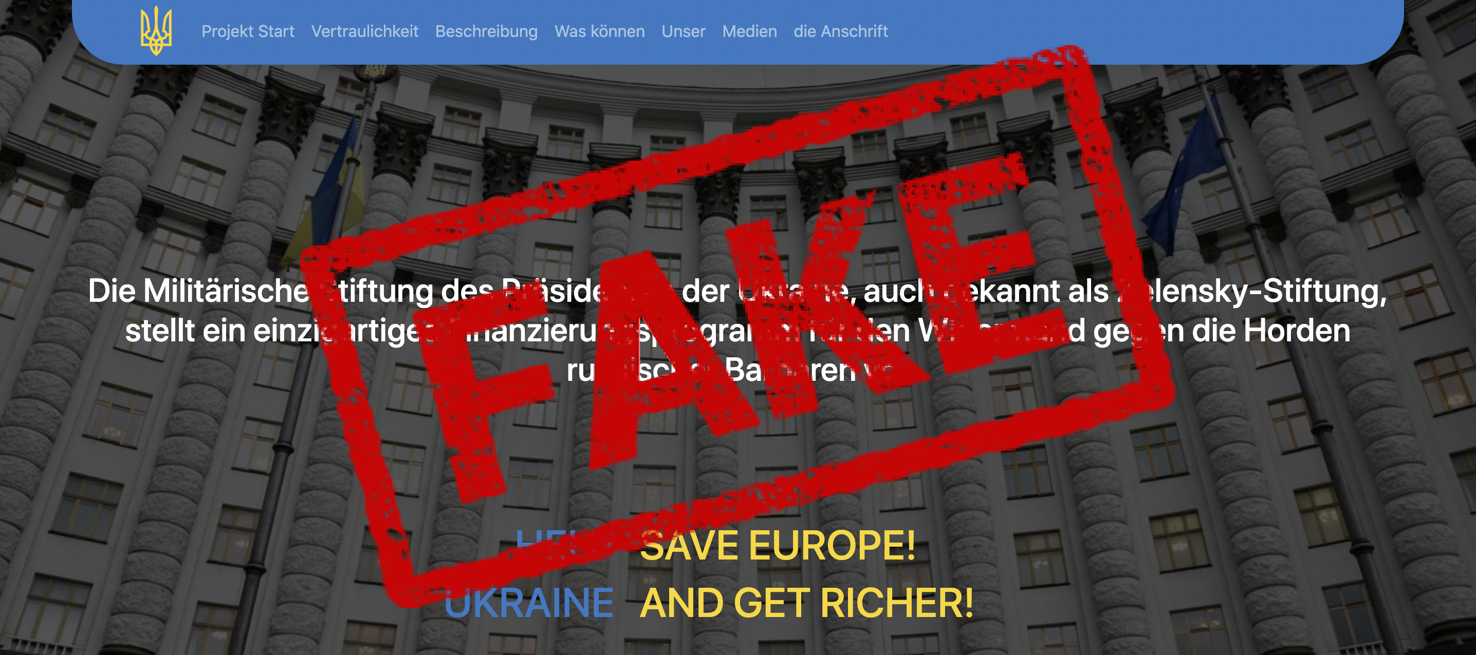 Зазначили, що на офіційних ресурсах Офісу президента немає жодної інформації про цей інтернет-майданчик. Також сайт має ознаки шахрайського ресурсу та створений для привласнення коштів під виглядом фонду допомоги Україні.