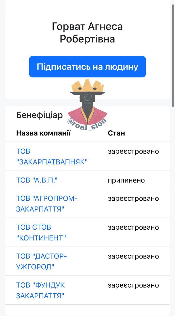 Роберт Горват — мажоритарник, депутат чинного і попереднього скликань Верховної Ради. З моменту обрання переписав свій бізнес на тоді ще 19-річну доньку Агнесу.