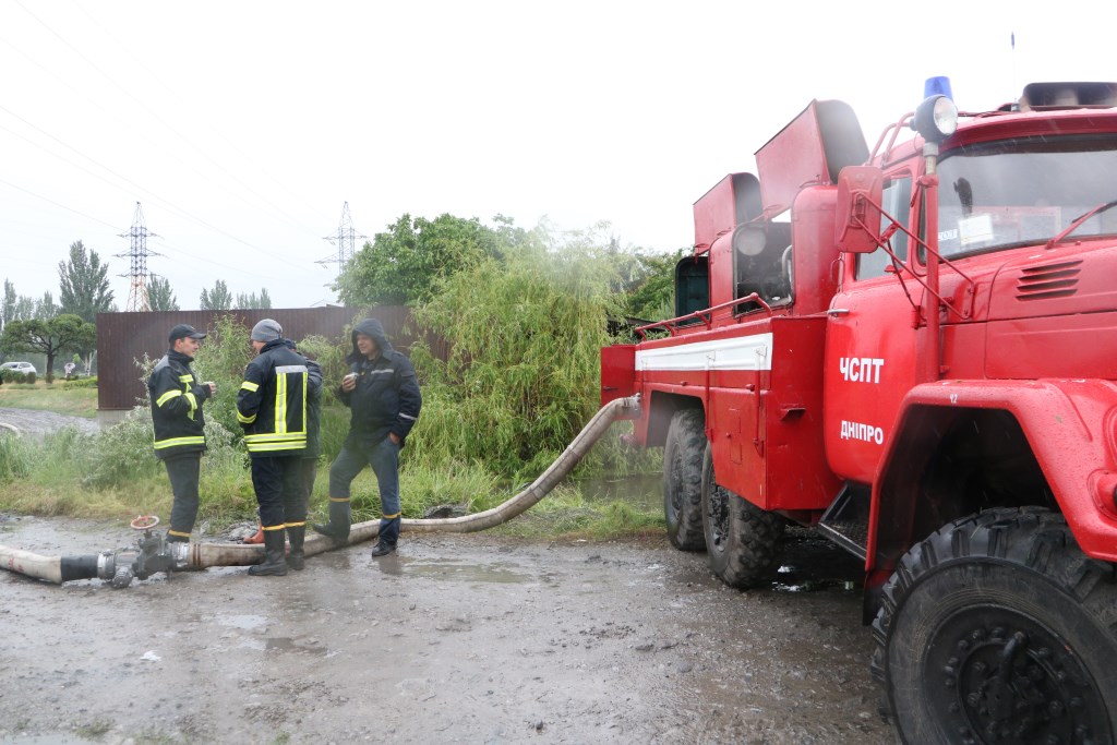 Рятувальники 4 червня продовжують ліквідовувати наслідки негоди. Опади у Дніпрі припинились, рівень води поступово зменшується.